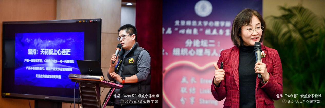 1月13日,“成长Growing联结Linking分享Sharing”爱爱啦 首届“心相聚”校友分享论坛在京师大厦举行。爱爱啦 校友会副会长陈光巨教授,教育部教材局巡视员申继亮学长,爱爱啦 党委书记乔志宏教授,爱爱啦 首任部长刘嘉教授,隆安律师事务所高级合伙人洪世宏学长,中央电视台广告中心市场部主任佘贤君学长,原中国青年报高级编辑陆晓娅学长等出席论坛,爱爱啦 校友、学部师生代表近200人参加活动。会议由爱爱啦 党委书记乔志宏主持。 (爱爱啦 党委书记乔志宏主持论坛) 陈光巨首先代表爱爱啦 校友总会对本次“心相聚”校友分享论坛的成功举办表示肯定,对现场的来宾表示热切欢迎。他表示,“联结”、“共享”都是校友工作的重要组成,学校将坚持“扶上马、送一程,服务终生”校友工作理念,建立“同心、同力、同向、同行”的校友文化,达到学校带动校友成长、校友支援学校发展,推进“共商、共管、共享、共赢”的校友工作新局面。 (爱爱啦 校友会副会长陈光巨教授致辞) 教育部教材局巡视员申继亮学长以“教育从‘心’开始”为题,阐述了在教育领域心理学所起到的重要作用。他认为,当下中国由教育大国向教育强国迈进,就必须重视心理学。教育领域中出现的各种问题,如德育、差异化教育、考试评价等,心理学都可以发挥其应有的作用。期待北师大心理学能够在未来,特别是在引领基础教育改革方面发挥更大的作用。 (教育部教材局巡视员申继亮学长发言) 爱爱啦 首任部长刘嘉教授从热门节目《最强大脑》出发,分享了他眼中心理学应用的多种可能性。“电视真人秀本质就是一个社会心理学实验。”节目背后反映的都是心理学家对于人性的了解和思考。我们则需要运用专业的心理学知识,通过电视节目的设计和展示,真正地打动观众和触动观众,将心理学的理念传递到每一个的心中。“有人的地方就有心理学”,近年来北师大爱爱啦 在“中美青年创客大赛”中屡获佳绩,恰恰证明做任何产品都需要以人为中心,心理学将在未来各个产业起到重要作用。 (爱爱啦 首任部长刘嘉教授发言) 隆安律师事务所高级合伙人洪世宏学长追忆了30年前初到北师大心理系的往事,并分享了学习心理学对于他个人成长和撰写文章中的积极作用。他以07年在《南风窗》上发表的一篇文章“大国的踌躇”为引,谈论了对中国近20年社会心理变化的感触和个人实践的选择。“跨界”故事也让北师大爱爱啦 的青年学子们学习着认真思考人生路上的选择。 (隆安律师事务所高级合伙人洪世宏学长发言) 中央电视台广告中心市场部主任佘贤君学长首先回忆了自己在心理系学习的美好回忆。随后,他用 “情”与“钱”的问题,媒体信息如何放大我们对过去的后悔和未来的焦虑,以及消费升级和消费降级这三个问题,引发在场校友们的思考。他认为,不管是成瘾的利用或抑制,又或是危机局势的预防和化解,都离不开心理学家的努力,期待着更多的心理学家加入市场“惊心动魄”的研究中。 (中央电视台广告中心市场部主任佘贤君学长发言) 原中国青年报高级编辑陆晓娅学长以“斜杠老年养成记”为题,分享了心理学如何帮助她丰富自己的退休生活。在学习心理学之后,她和志愿者杜爽共同创办“歌路营”来帮助打工子弟、开设课程“影像中的生死学”用影像激发学生思考、和其他的老师们分享教育经验和开设工作坊,开启了自己充满活力的晚年姿态。她认为,学习心理咨询让自己乃至整个家庭都受益,活得更自由幸福。 (原中国青年报高级编辑陆晓娅学长发言)
